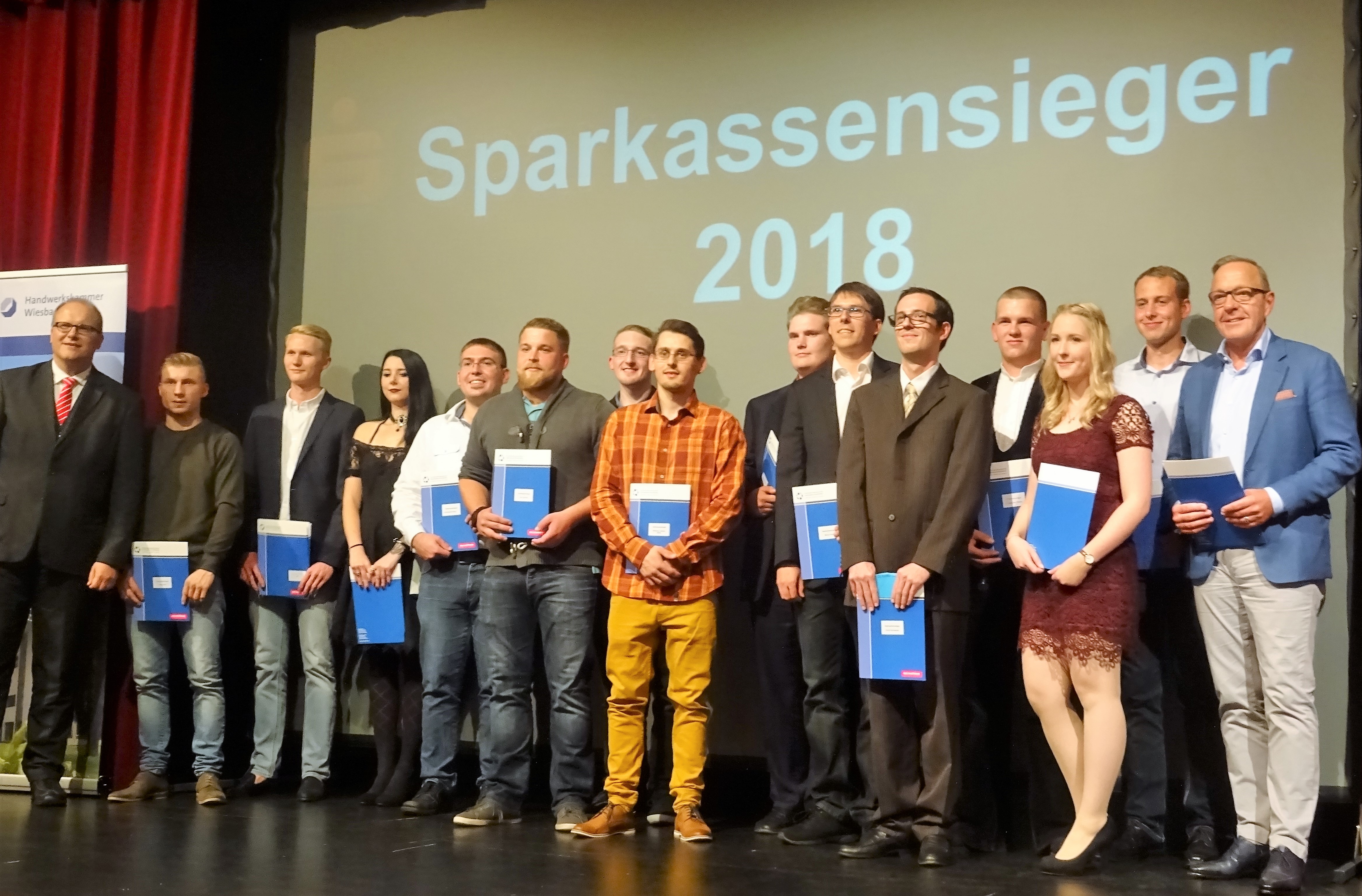 Zum Abschluss verteilten Horst Wanik (Gelnhausen) und Torsten Priemer (Schlüchtern) die Preise der Sparkassensieger. 18 Mal wurden für das beste Gesamtergebnis eines Lehrlings aus einem Innungsbetrieb 100 Euro als Anerkennung verteilt.