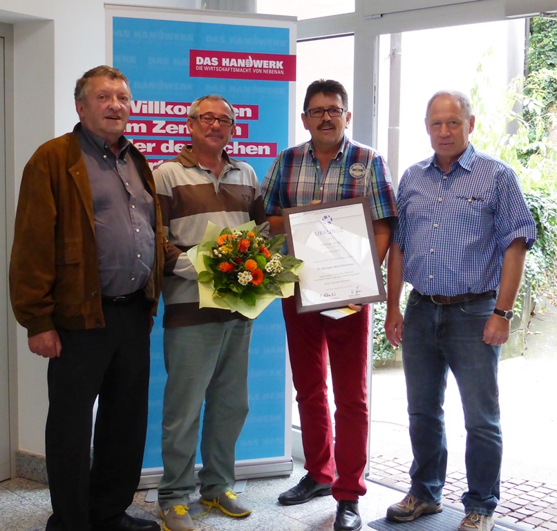 Kreishandwerksmeister Ottmar Hutzenlaub, dessen Stellvertreter Joachim Wagner sowie der Geschäftsführer der Kreishandwerkerschaft, Klaus Zeller, bedankten sich für die bisher geleistete Arbeit und hoffen auf noch viele weitere Jahre guter Zusammenarbeit.