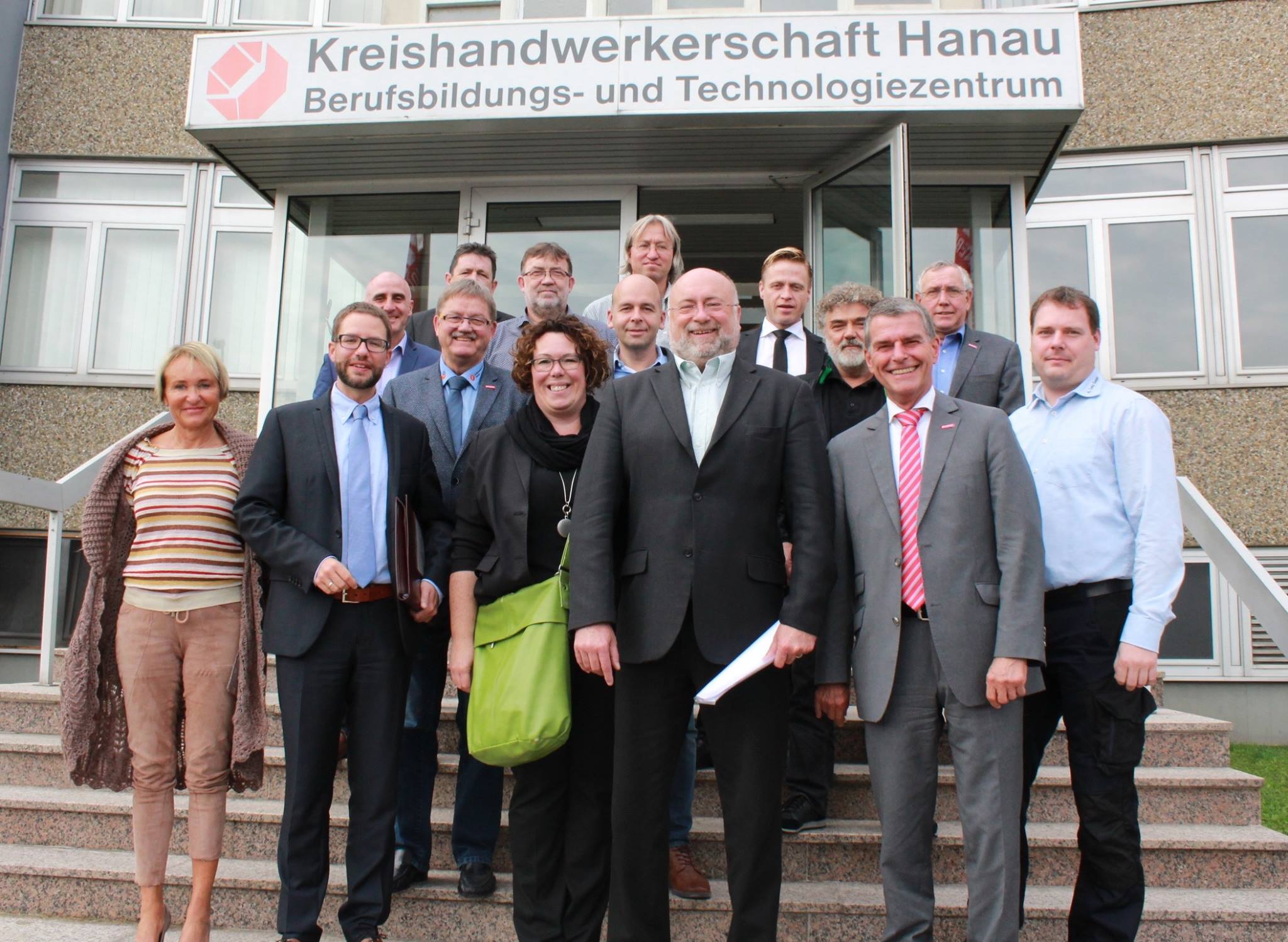 Regelmäßig treffen sich die Kreisspitze und die Kreishandwerkerschaften zum Austausch über aktuelle Themen aus der Kreispolitik und zum Handwerk. Für Landrat Thorsten Stolz bedeutete das jüngste Treffen die Premiere in der Runde. „Diese Gesprächsrunden sind eine gute Tradition, die wir als Kreisspitze gerne nahtlos fortsetzen wollen“, erklärte Stolz, der zusammen mit Erster Kreisbeigeordneter Susanne Simmler und Kreisbeigeordnetem Matthias Zach in die Räume der Kreishandwerkerschaft Hanau gekommen war, ebenso wie die Vertreter der Kreishandwerkerschaft Gelnhausen-Schlüchtern um Kreishandwerksmeister Joachim Wagner und Geschäftsführer Klaus Zeller.