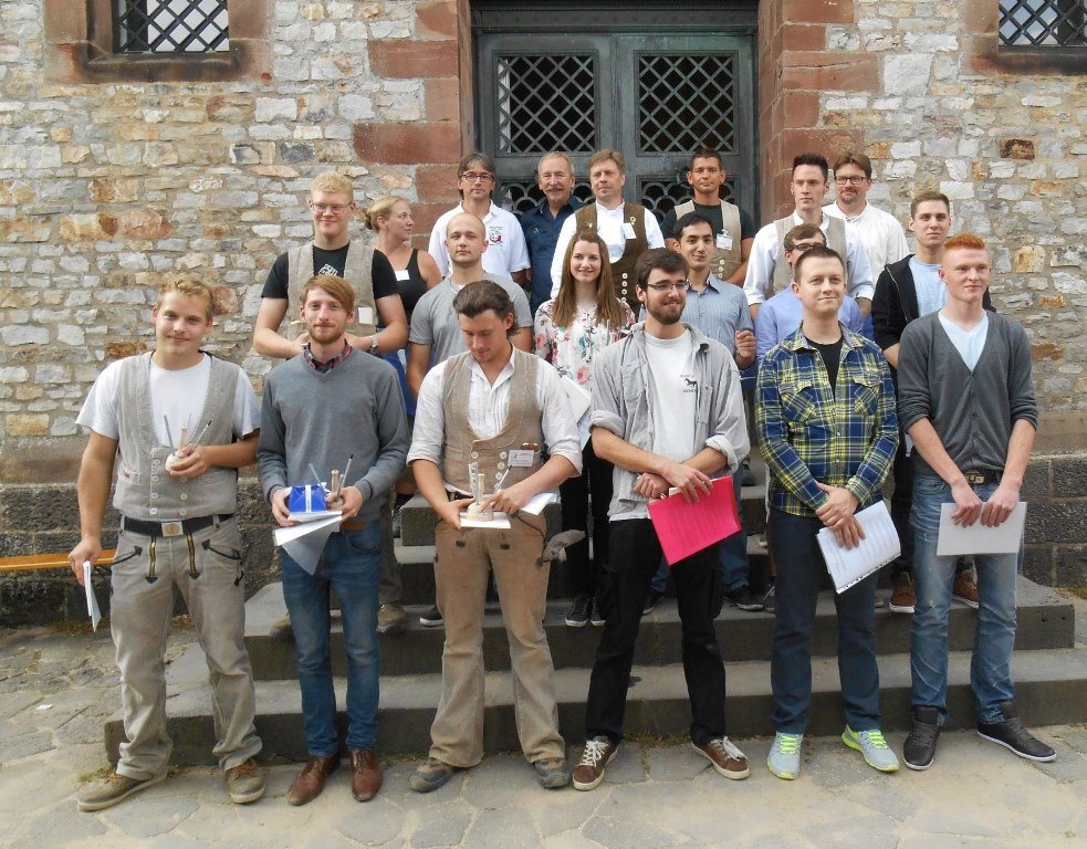Neben den Steinmetzen und Steinbildhauern überreichte man ebenfalls den Naturwerksteinmechanikern Christian Skornpa, Fabian Waßmuth und Renè Wischlinski, alle ausgebildet bei der Firma Zimmermann & Löll in Aßlar, ihr Prüfungszeugnis. Prüfungsbester im Industrieberuf ist Herr Renè Wischlinski.